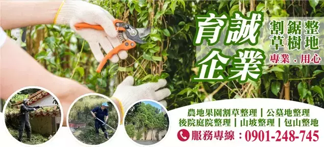 專營:用怪手袍木、袍草還是各種割草、鋸樹,亦或園藝工程、整地,育誠企業都能提供全方位的專業服務,致力於滿足客戶的各種需求。