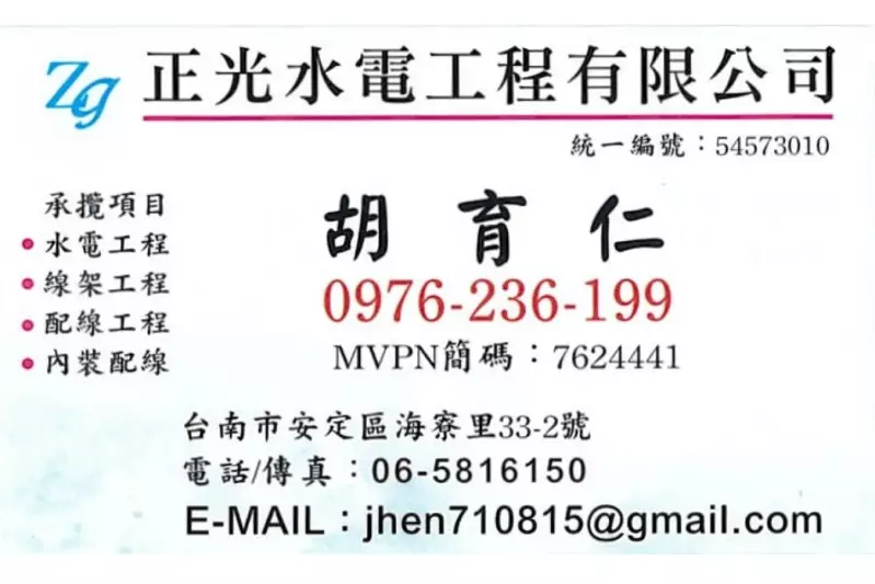 正光水電工程有限公司位於台南地區,專營各項水電工程、 配管配線、燈插監控線槽施作、高低壓系統工程,擁有多年的專業施工經驗,正光水電工程秉持著誠信、專業和品質至上的理念,贏得了眾多客戶的信任與好評