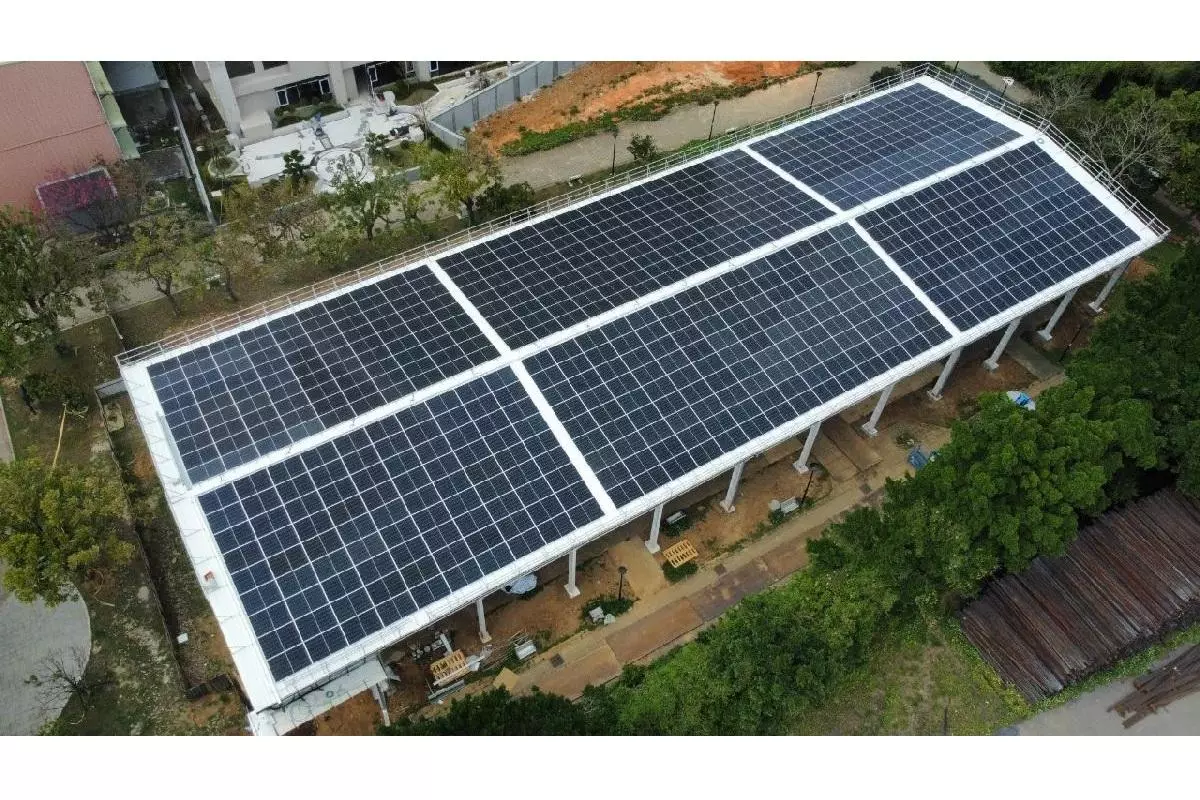 太陽能板具有天然隔熱效果,並由專人定期清潔,達到降溫、省電雙效合