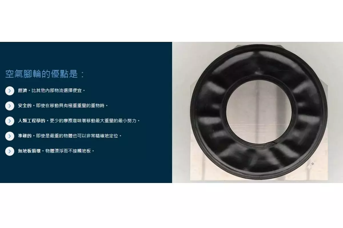 氣墊搬運設備又稱空氣軸承、氣浮搬運設備,利用空氣作為介質,在搬運重物和地板間產生一層空氣薄膜,減輕搬運物体的重量。使用氣墊的先決條件必需有足夠的空氣來源,平滑而且水平的地板,包含沒有孔隙,毛邊的表面,這樣就能創造出輕鬆、安全、不傷地板的搬運體驗。