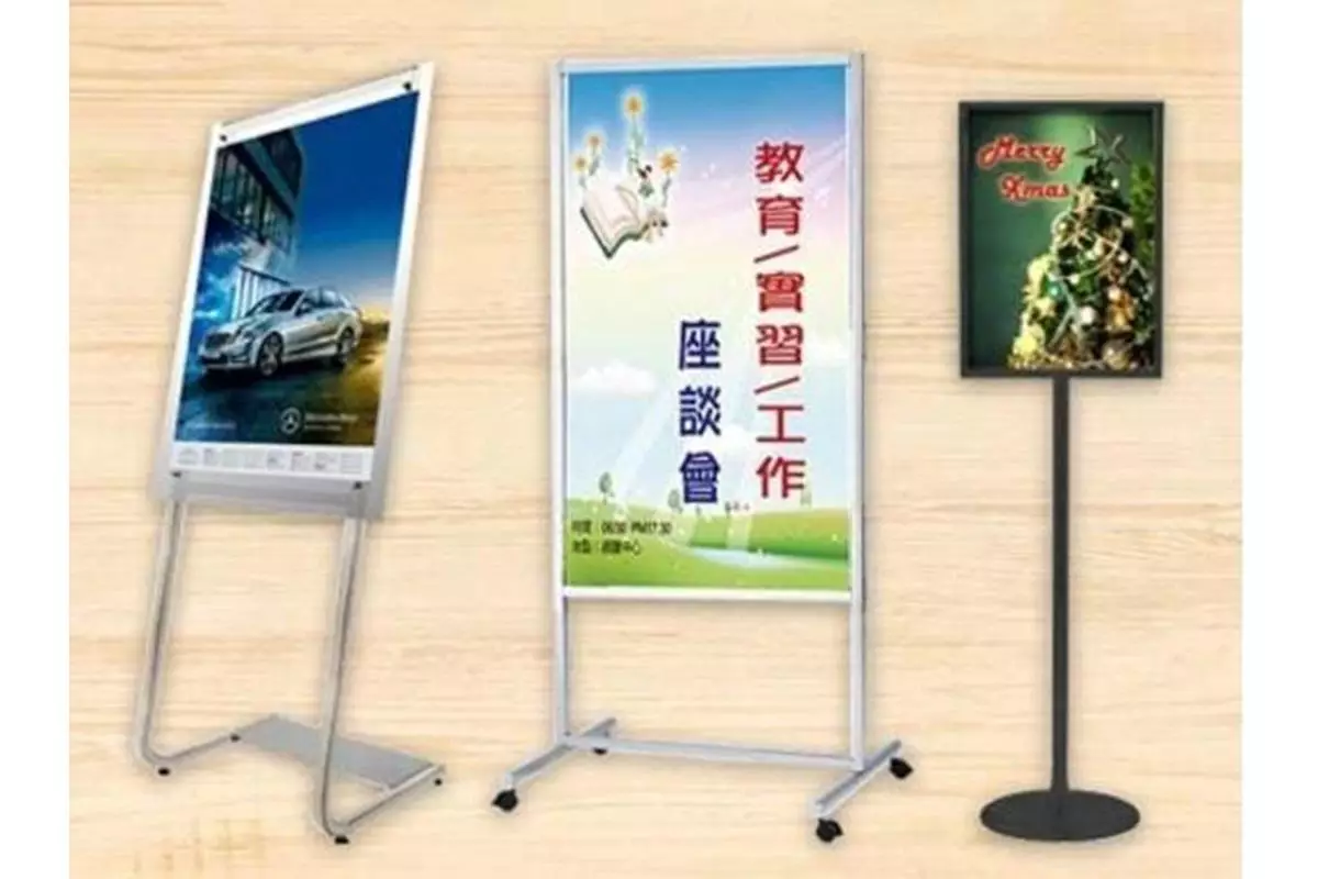 公佈欄產品系列齊全,提供圖釘式、磁鐵式、兩用式、自黏式、櫥窗式及戶外防水型等選擇。材質包含天鵝絨、膠皮、OA 飾布、大圖輸出面材等十餘種,可依使用環境與需求搭配。另有活動展示架、講桌講台、簡報架、班級牌、司儀桌、圍欄柱、紅龍柱等周邊設備,方便機關單位與企業進行完整布置。