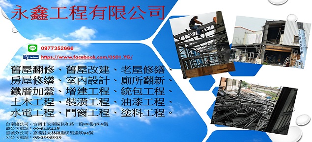 永鑫工程-台南鋼結構,台南鋼網牆,台南老屋整修,台南鐵厝,台南白鐵工程,台南鋼構工程,台南鋼網牆工程,台南海砂屋專業整修